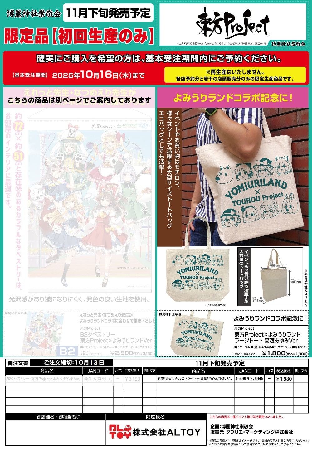 東方Project『★限定★東方Project×よみうりランド ラージトート 高渡あゆみVer.』【2025年11月下旬発売】[4549970376952]