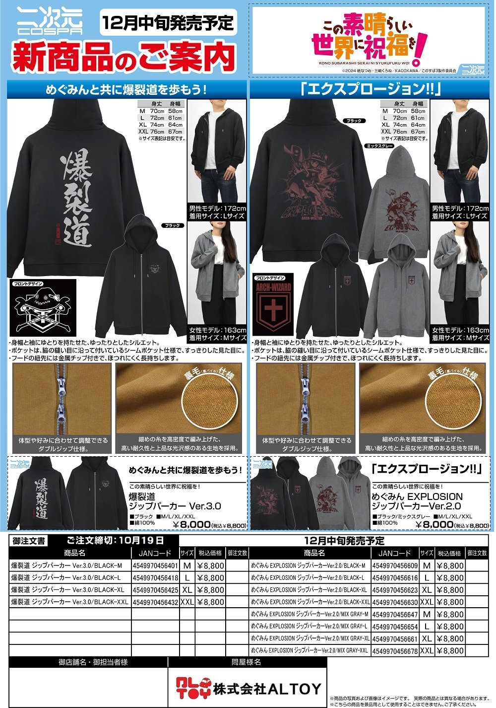 この素晴らしい世界に祝福を!『爆裂道 ジップパーカー Ver.3.0』『めぐみん EXPLOSION ジップパーカーVer.2.0』【2025年12月中旬発売】[4549970456401]