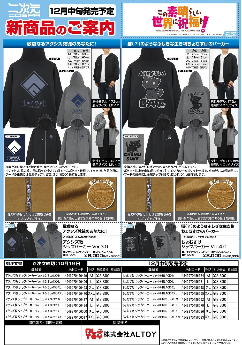 この素晴らしい世界に祝福を!『アクシズ教 ジップパーカー Ver.3.0』『ちょむすけ ジップパーカー Ver.4.0』【2025年12月中旬発売】[4549970456449]