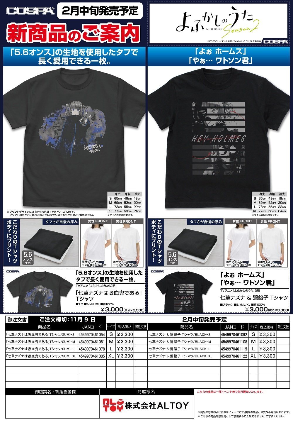 よふかしのうた『「七草ナズナは吸血鬼である」Tシャツ』『七草ナズナ & 鶯餡子 Tシャツ』【2026年2月中旬発売】[4549970461054]