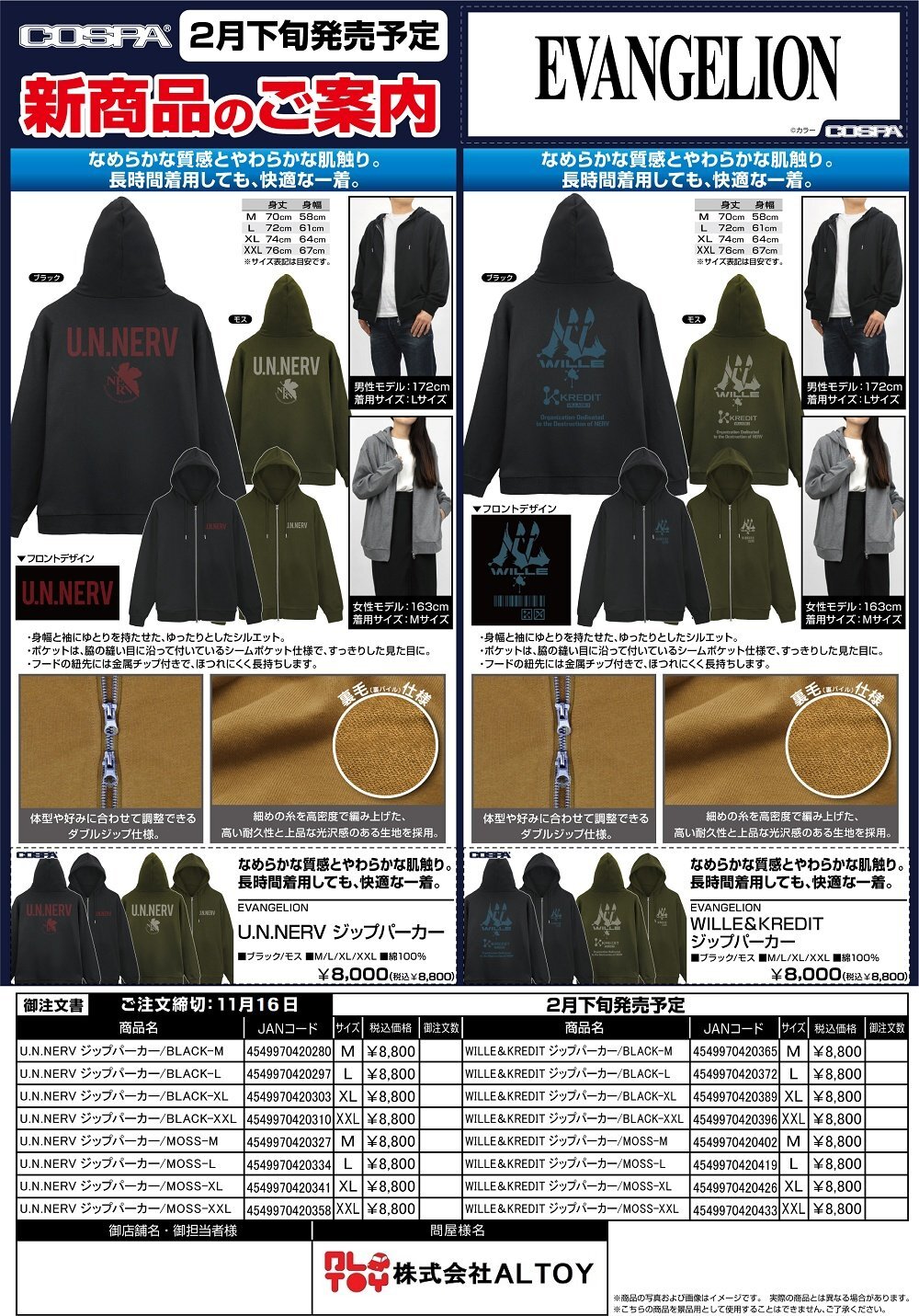 ![画像1: EVANGELION『U.N.NERV ジップパーカー』『WILLE&KREDIT ジップパーカー』【2026年2月下旬発売】[4549970420280] (1)](https://www.altoy.jp/data/altoy/product/20251031_31d9ea.jpg)