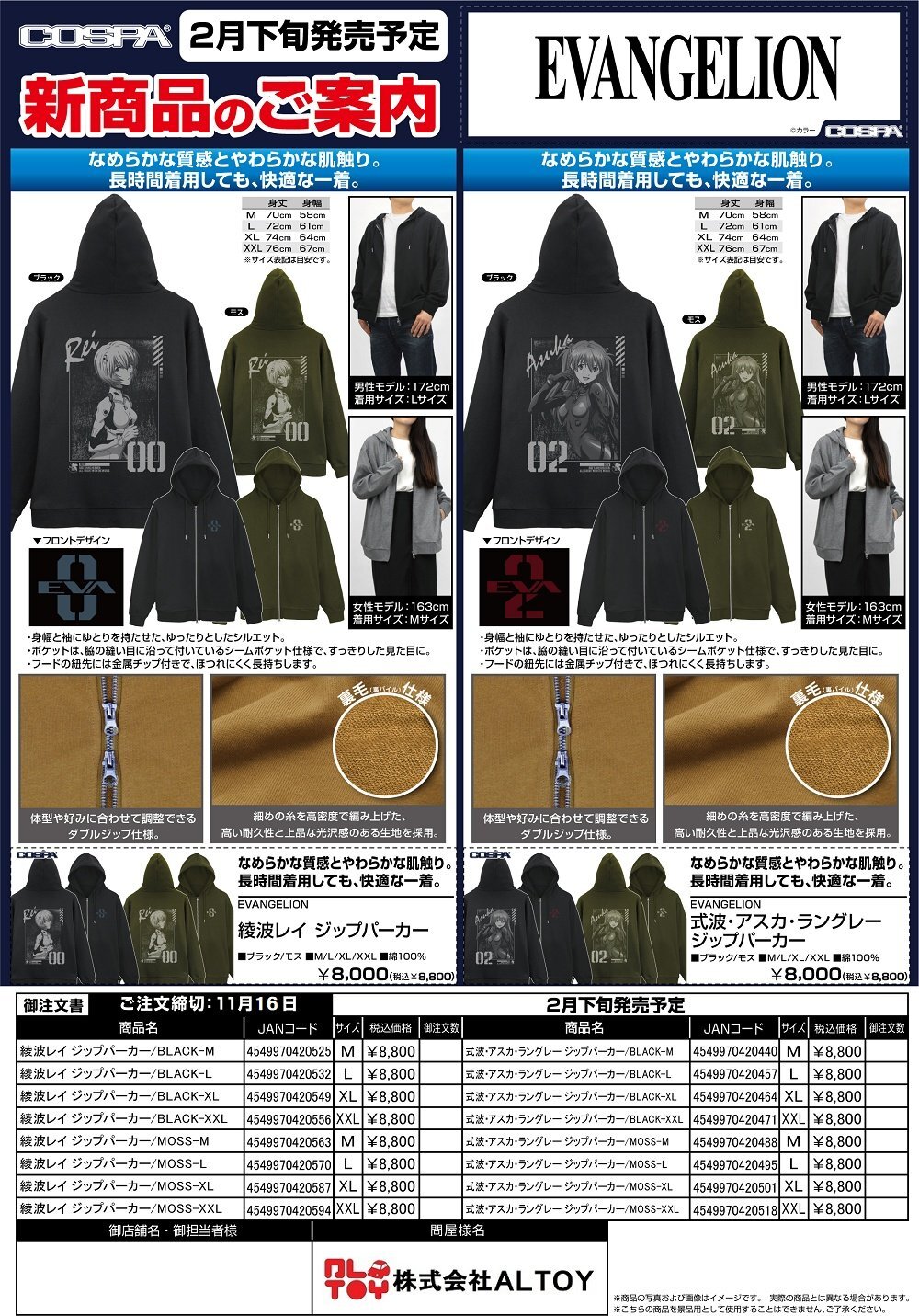 ![画像1: EVANGELION『綾波レイ ジップパーカー』『式波・アスカ・ラングレー ジップパーカー』【2026年2月下旬発売】[4549970420525] (1)](https://www.altoy.jp/data/altoy/product/20251031_6b9be1.jpg)