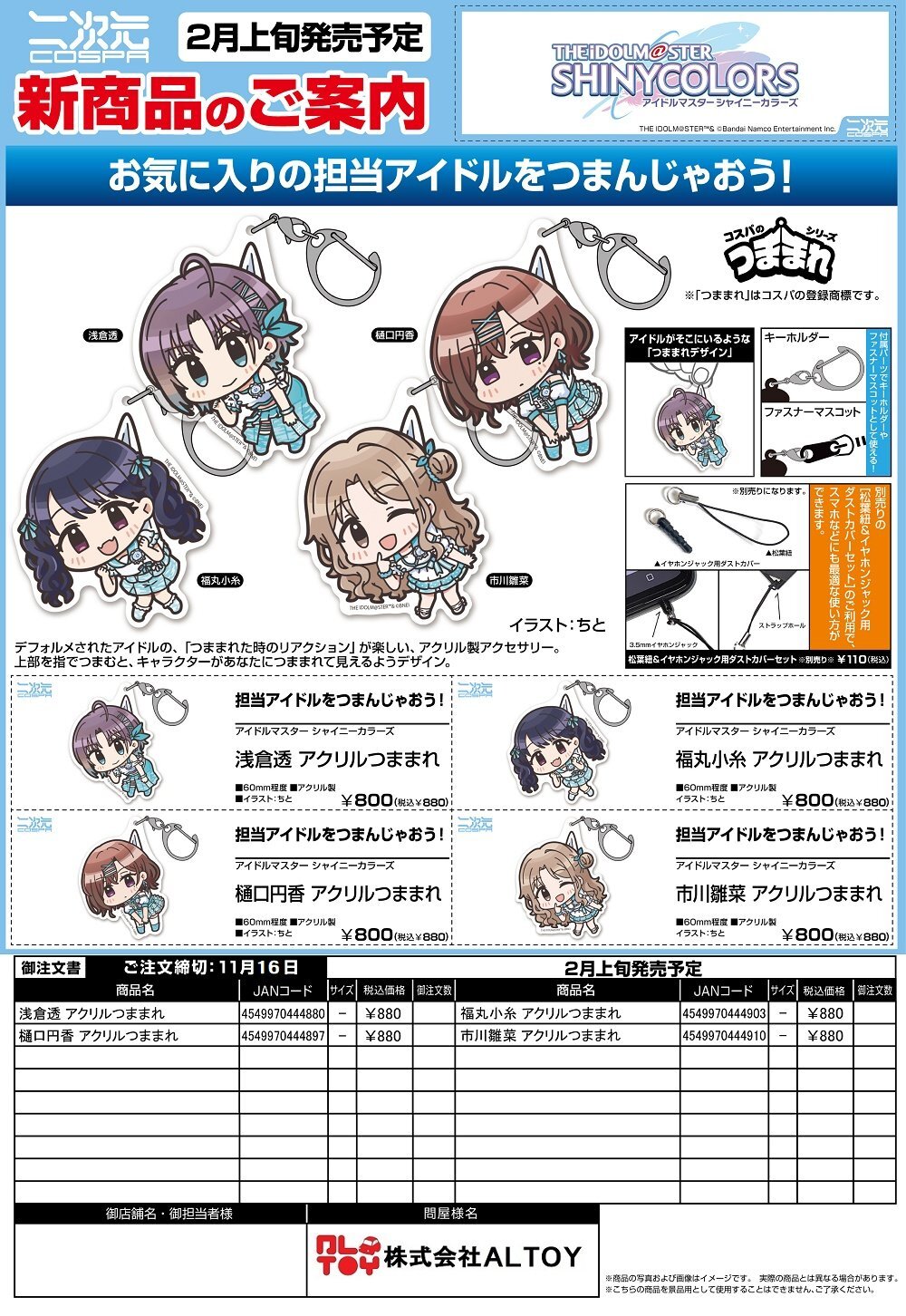 アイドルマスター シャイニーカラーズ アクリルつままれ 『浅倉透』『樋口円香』『福丸小糸』『市川雛菜』【2026年2月上旬発売】[4549970444880]【2025年9月上旬発売】[4549970436441]