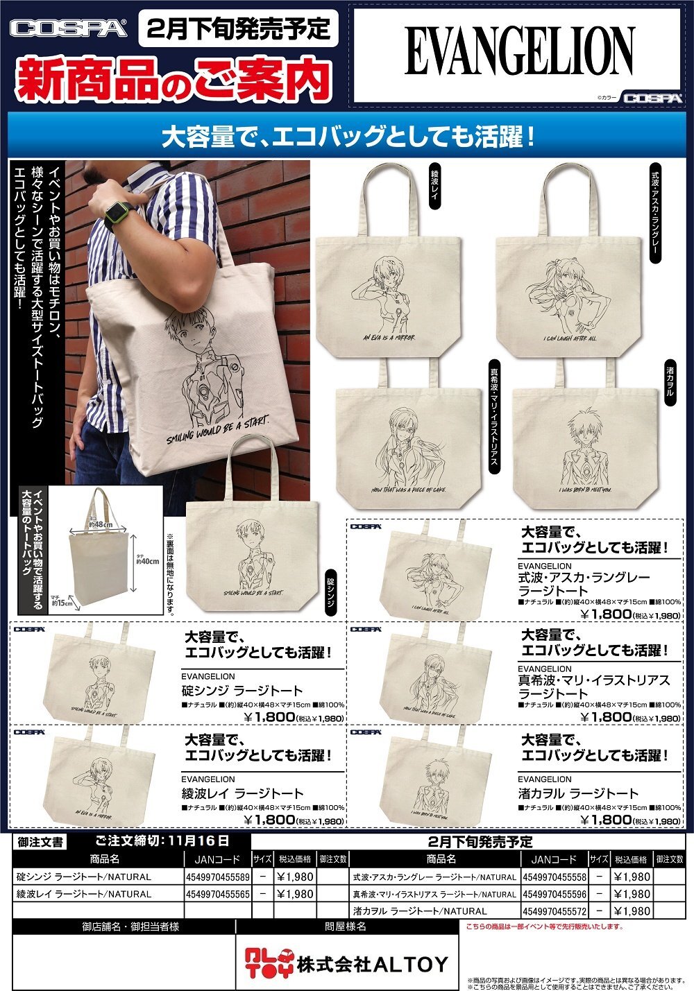 EVANGELION ラージトート『碇シンジ』『綾波レイ』『式波・アスカ・ラングレー』『真希波・マリ・イラストリアス』『渚カヲル』【2026年2月下旬発売】[4549970455589]