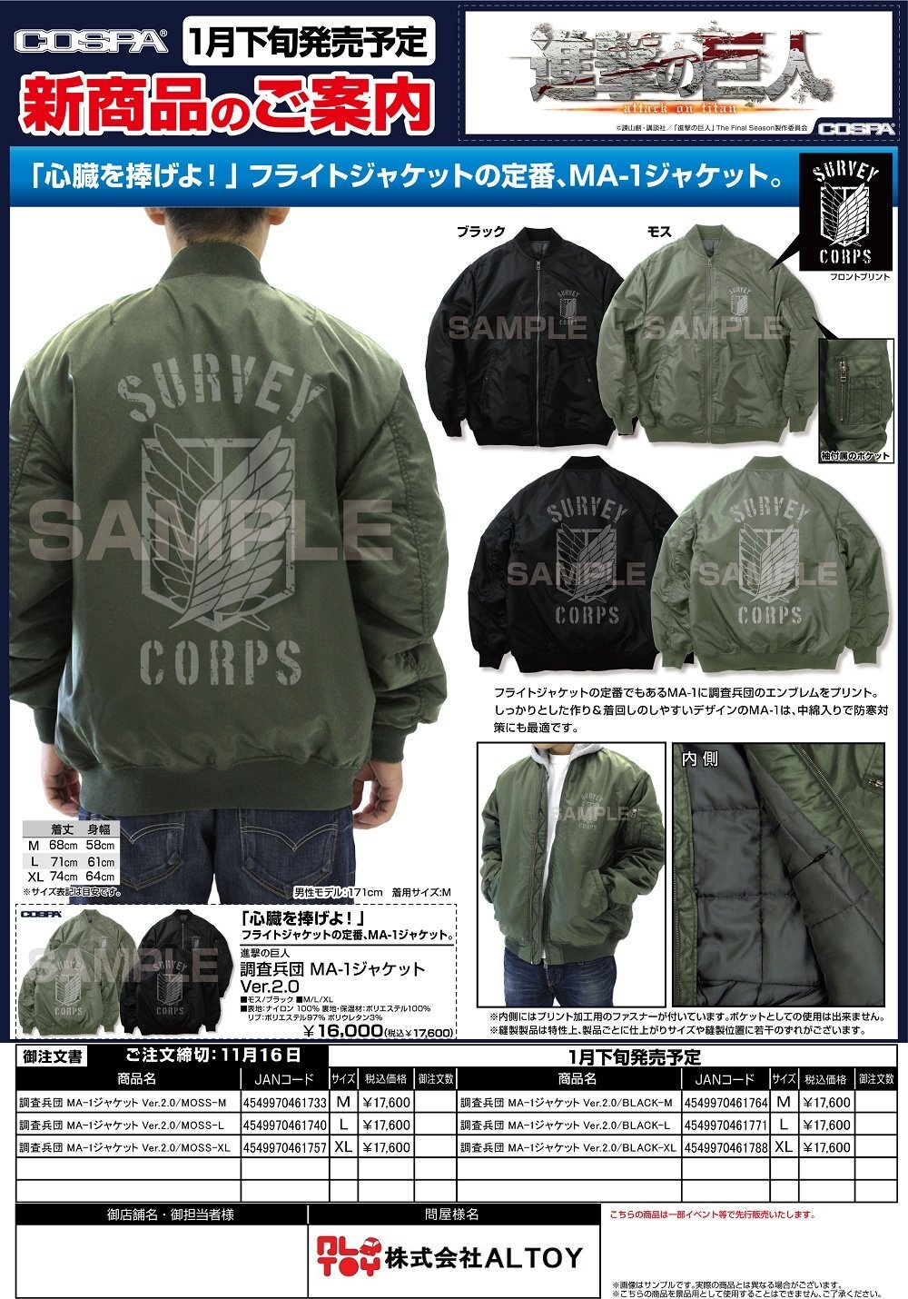 進撃の巨人『調査兵団 MA-1ジャケット Ver.2.0』 BLACK / MOSS【2026年1月下旬発売】[4549970461733]