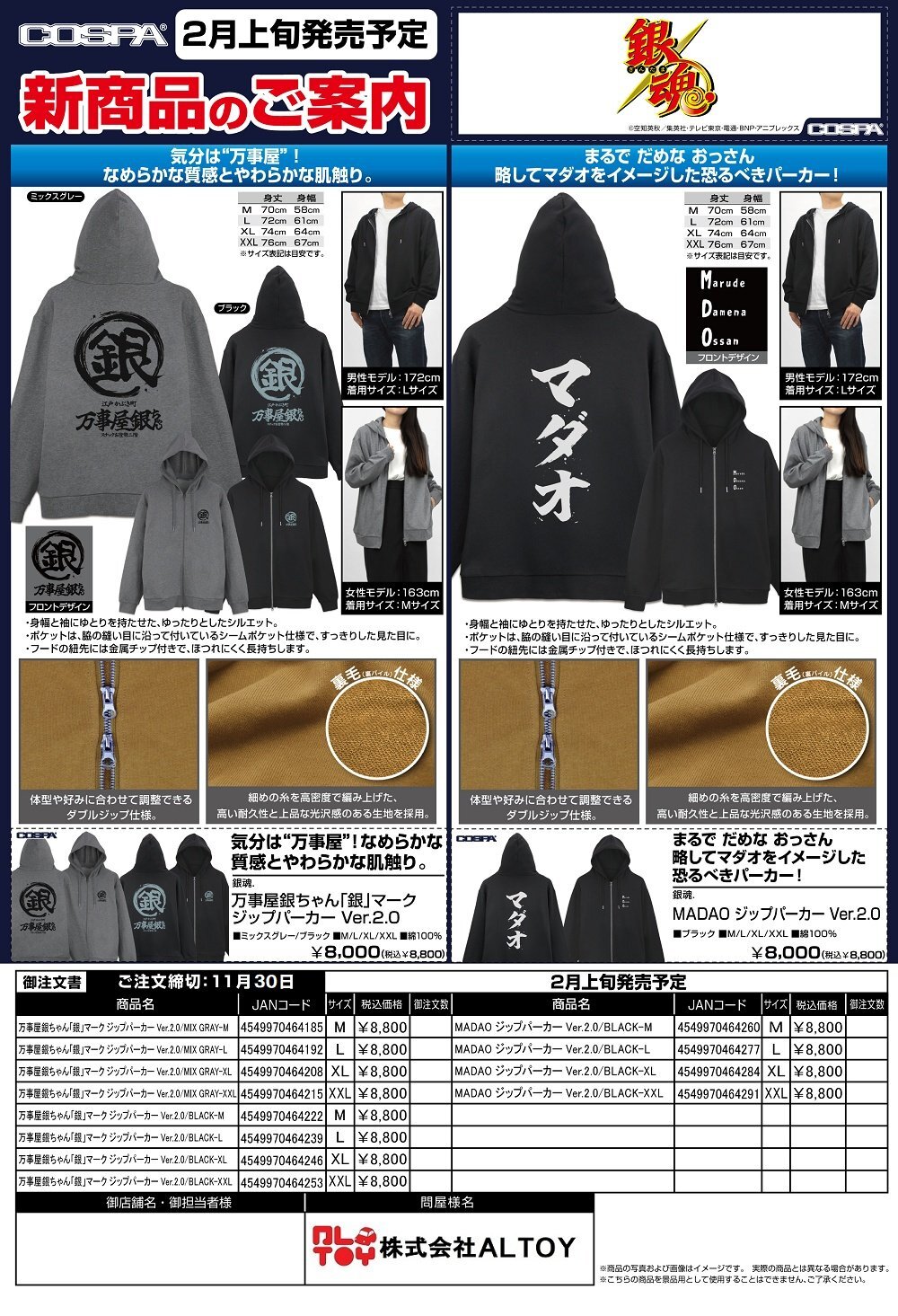 銀魂『万事屋銀ちゃん「銀」マーク ジップパーカー Ver.2.0』『MADAO ジップパーカー Ver.2.0』【2026年2月上旬発売】[4549970464185]