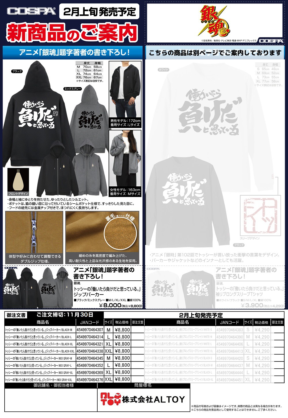銀魂『トッシーの「働いたら負けだと思っている。」ジップパーカー』【2026年2月上旬発売】[4549970464307]