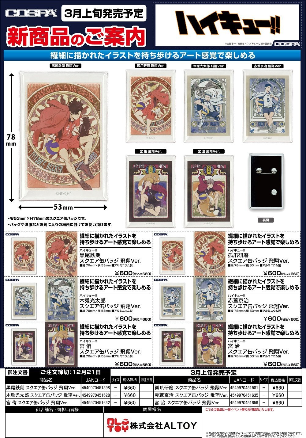 ハイキュー!! スクエア缶バッジ 飛翔Ver.『黒尾鉄朗』『木兎光太郎』『宮 侑』『孤爪研磨』『赤葦京治』『宮 治』【2026年3月上旬発売】[4549970451598]