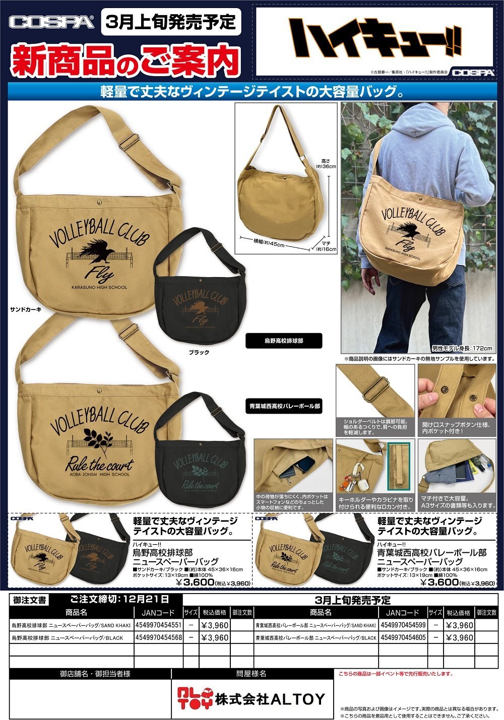 ハイキュー!! ニュースペーパーバッグ『烏野高校排球部』『青葉城西高校バレーボール部』【2026年3月上旬発売】[4549970454551]