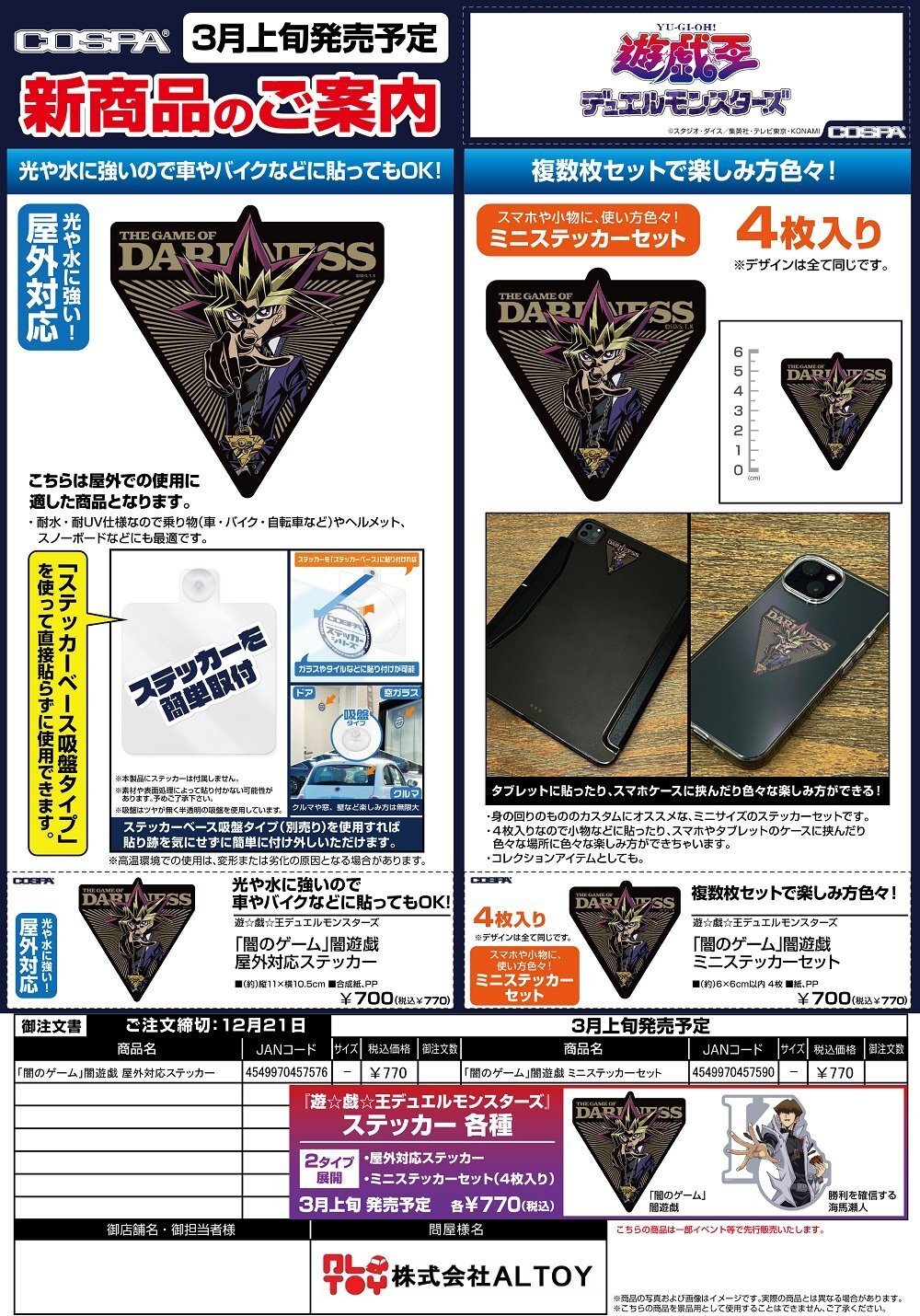 遊☆戯☆王デュエルモンスターズ『「闇のゲーム」闇遊戯 屋外対応ステッカー』『「闇のゲーム」闇遊戯 ミニステッカーセット』【2026年3月上旬発売】[4549970457576]