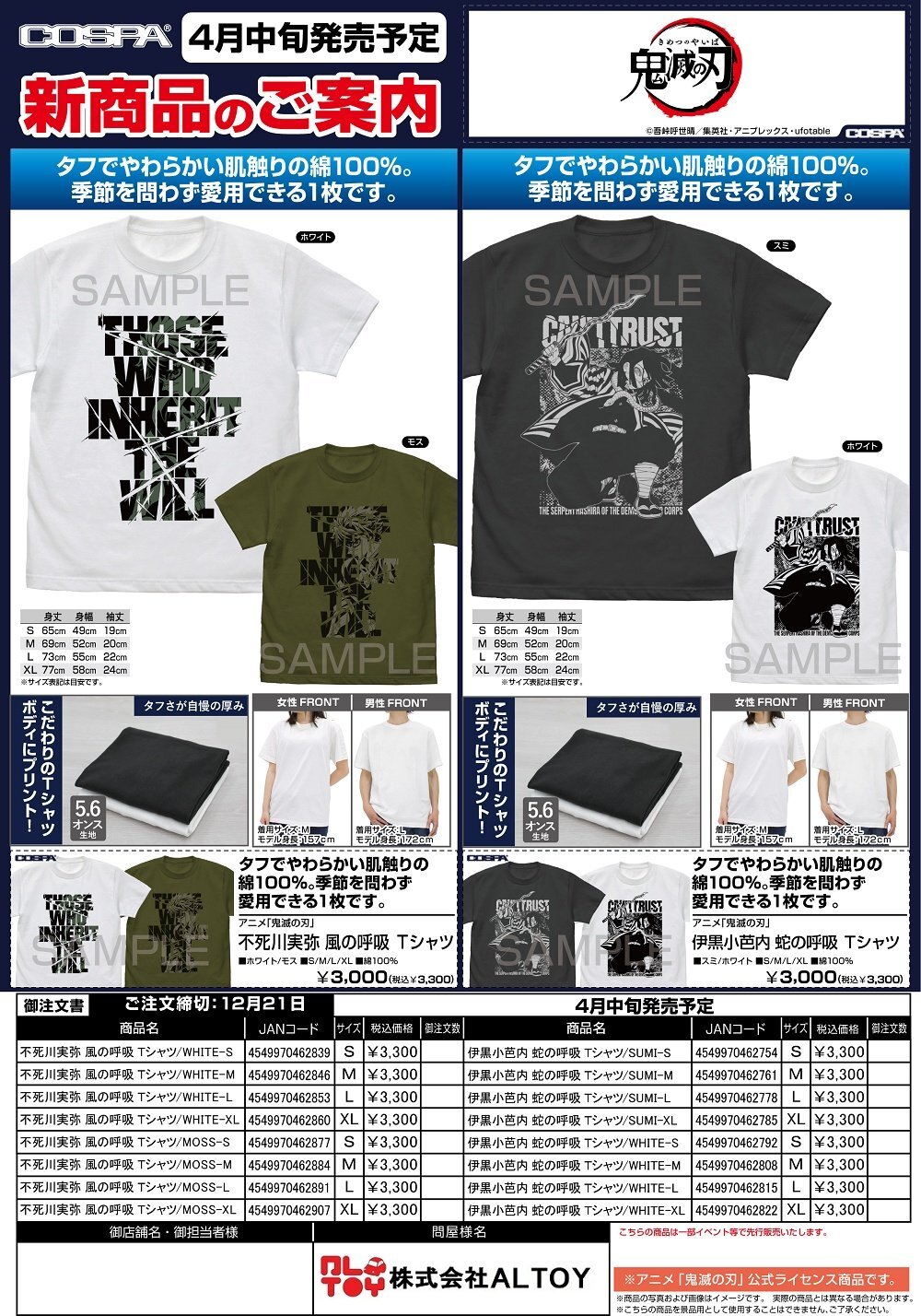 鬼滅の刃『不死川実弥 風の呼吸 Tシャツ』『伊黒小芭内 蛇の呼吸 Tシャツ』【2026年4月中旬発売】[4549970462839]