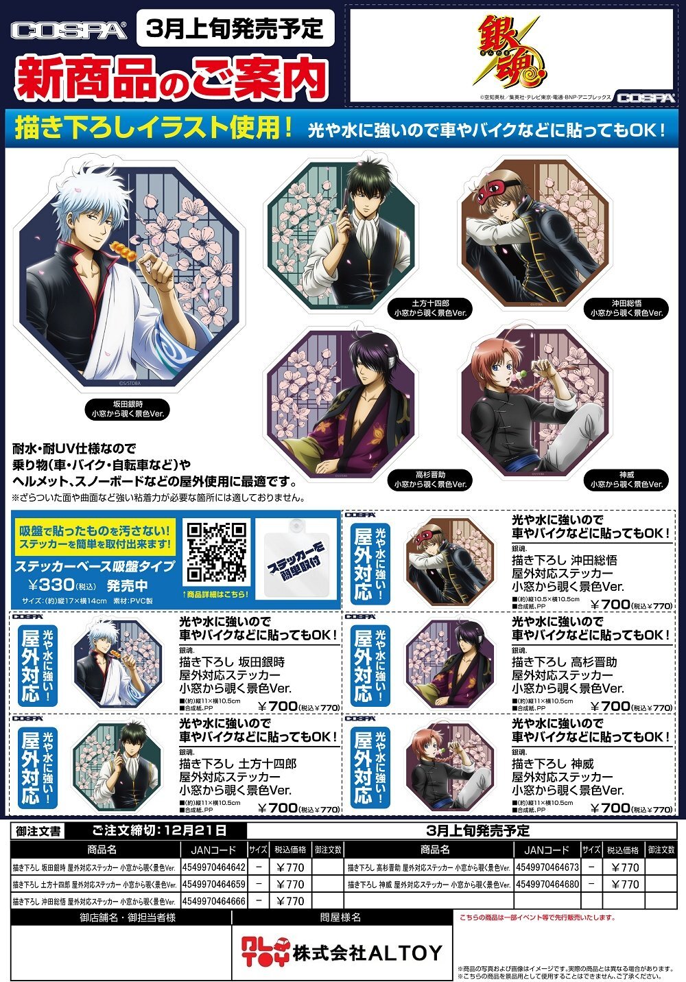 銀魂 描き下ろし 屋外対応ステッカー 小窓から覗く景色Ver. 『坂田銀時』『土方十四郎』『沖田総悟』『高杉晋助』『神威』【2026年3月上旬発売】[4549970464642]