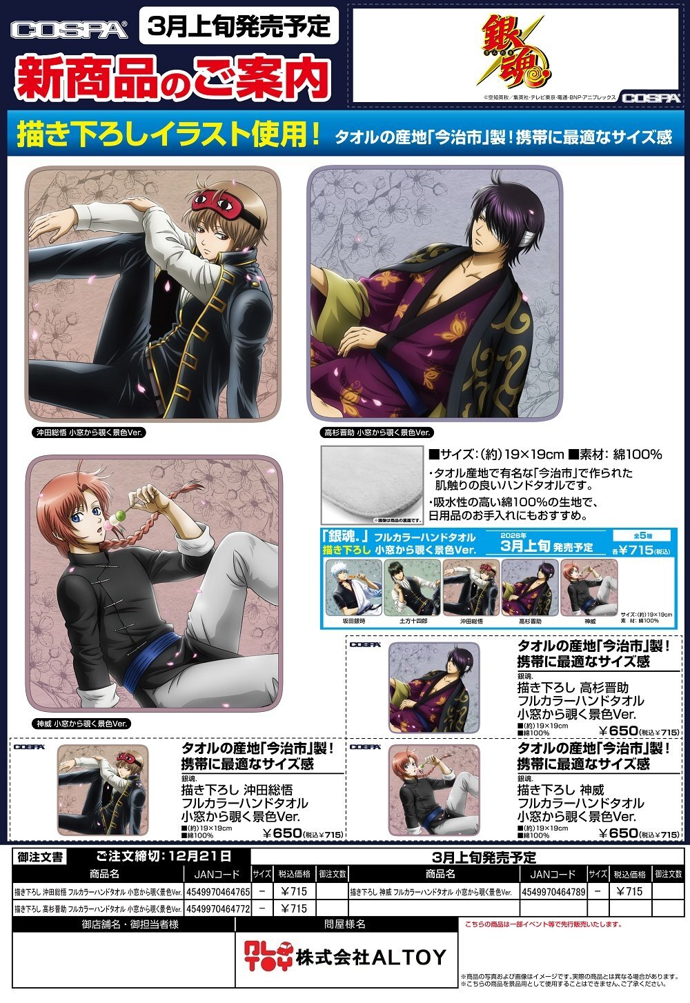銀魂 描き下ろし フルカラーハンドタオル 小窓から覗く景色Ver. 『沖田総悟』『高杉晋助』『神威』【2026年3月上旬発売】[4549970464765]