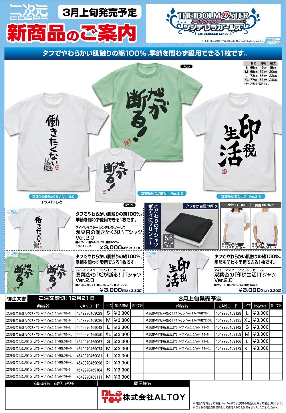 アイドルマスター シンデレラガールズ『双葉杏の働きたくない Tシャツ Ver.2.0』『双葉杏の『だが断る!』Tシャツ Ver.2.0』『双葉杏の『印税生活』Tシャツ Ver.2.0』【2026年3月上旬発売】[4549970469029]