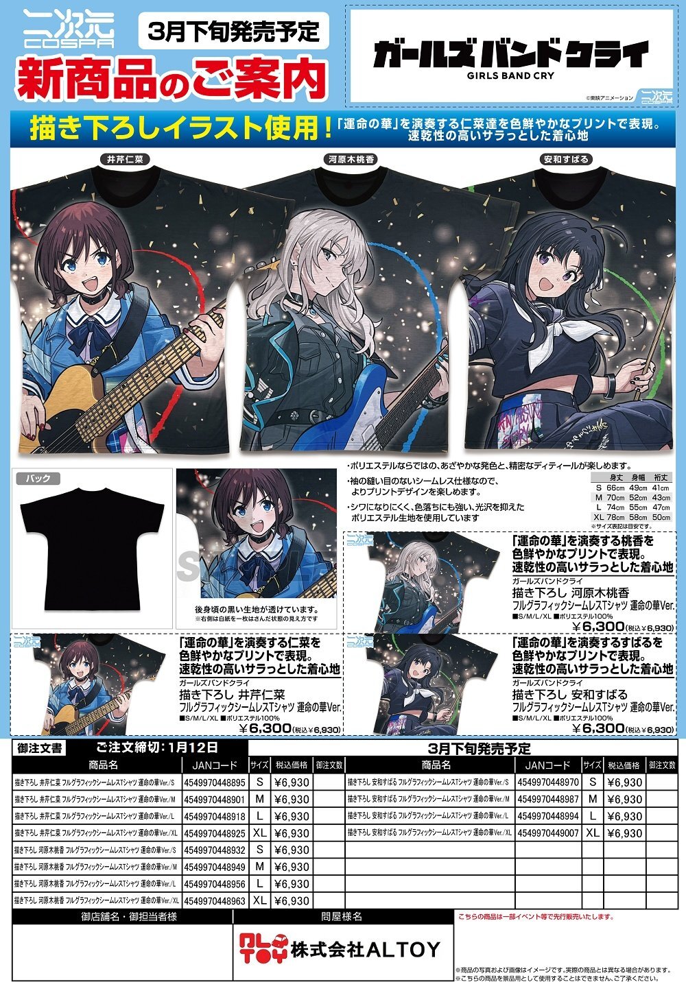 ガールズバンドクライ 描き下ろし フルグラフィックシームレスTシャツ 運命の華Ver.『井芹仁菜』『河原木桃香』『安和すばる』【2026年3月下旬発売】[4549970448895]