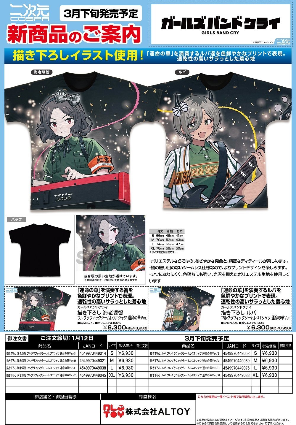 ガールズバンドクライ 描き下ろし フルグラフィックシームレスTシャツ 運命の華Ver.『海老塚智』『ルパ』【2026年3月下旬発売】[4549970449014]