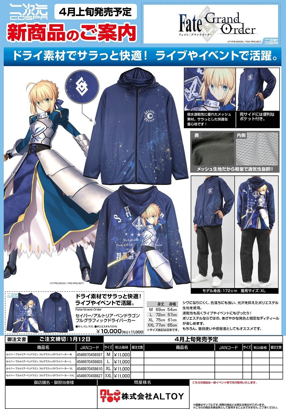 Fate/Grand Order『セイバー/アルトリア・ペンドラゴン フルグラフィックドライパーカー』【2026年4月上旬発売】[4549970458597]