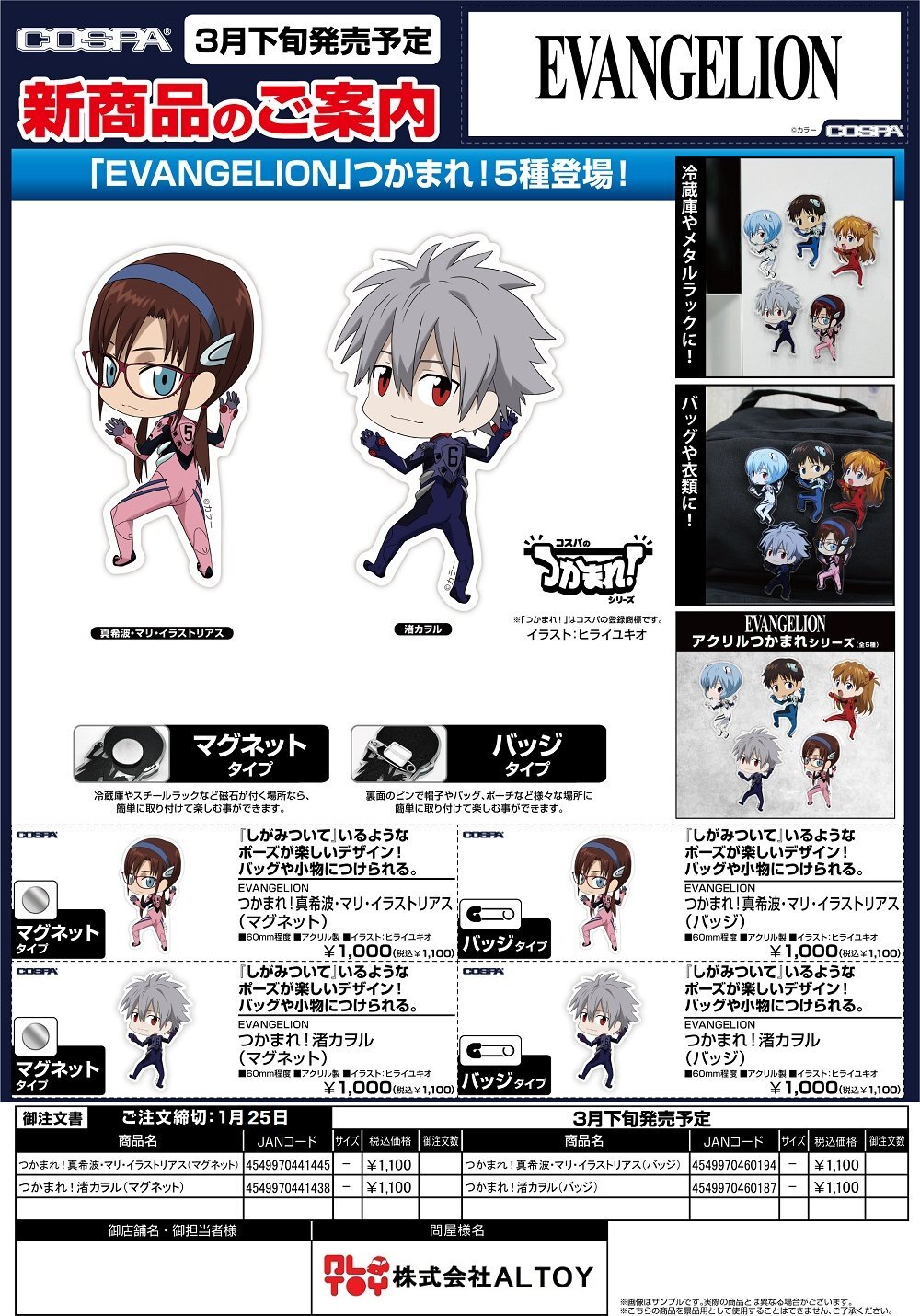 EVANGELION つかまれ!『渚カヲル(マグネット)』『真希波・マリ・イラストリアス(マグネット)』『渚カヲル(バッジ)』『真希波・マリ・イラストリアス(バッジ)』【2026年3月下旬発売】[4549970441445]