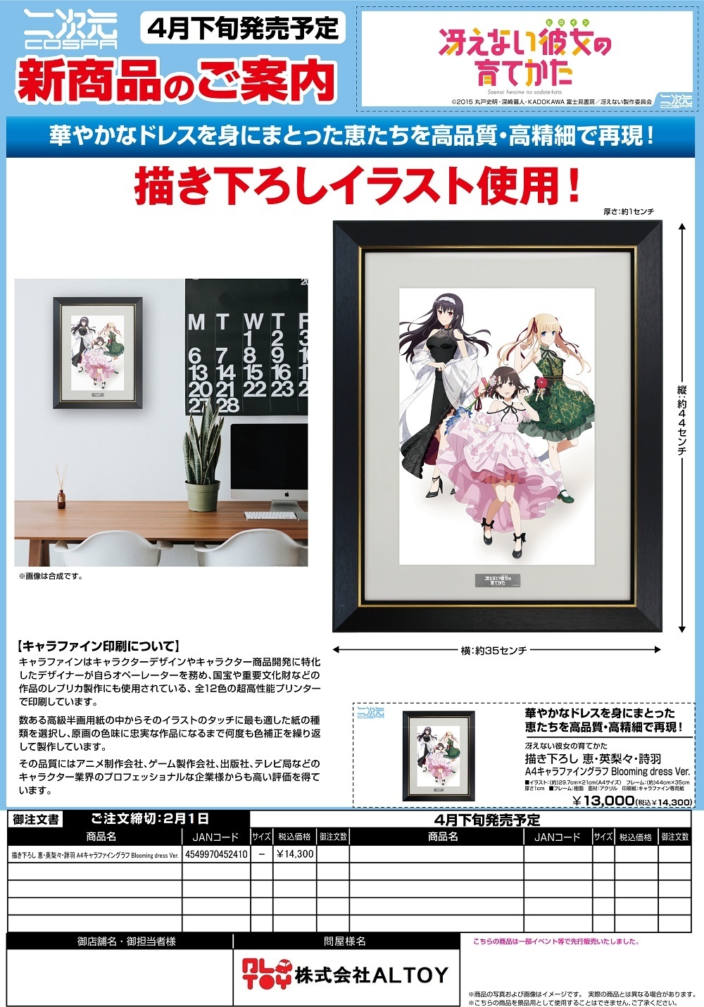冴えない彼女の育てかた『描き下ろし 恵・英梨々・詩羽 A4キャラファイングラフ Blooming dress Ver.』【2026年4月下旬発売】[4549970452410]