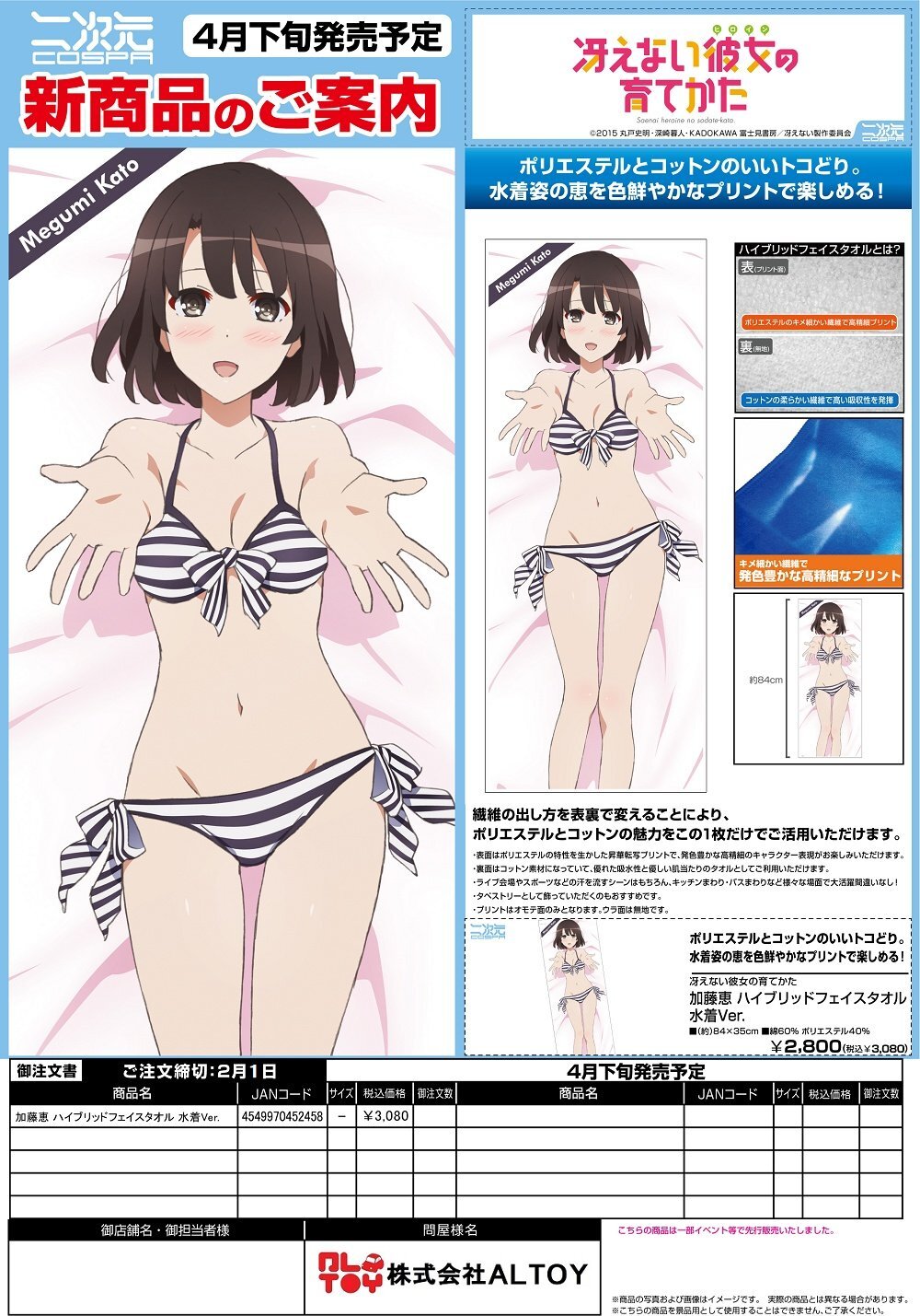 冴えない彼女の育てかた『加藤恵 ハイブリッドフェイスタオル 水着Ver.』【2026年4月下旬発売】[4549970452458]