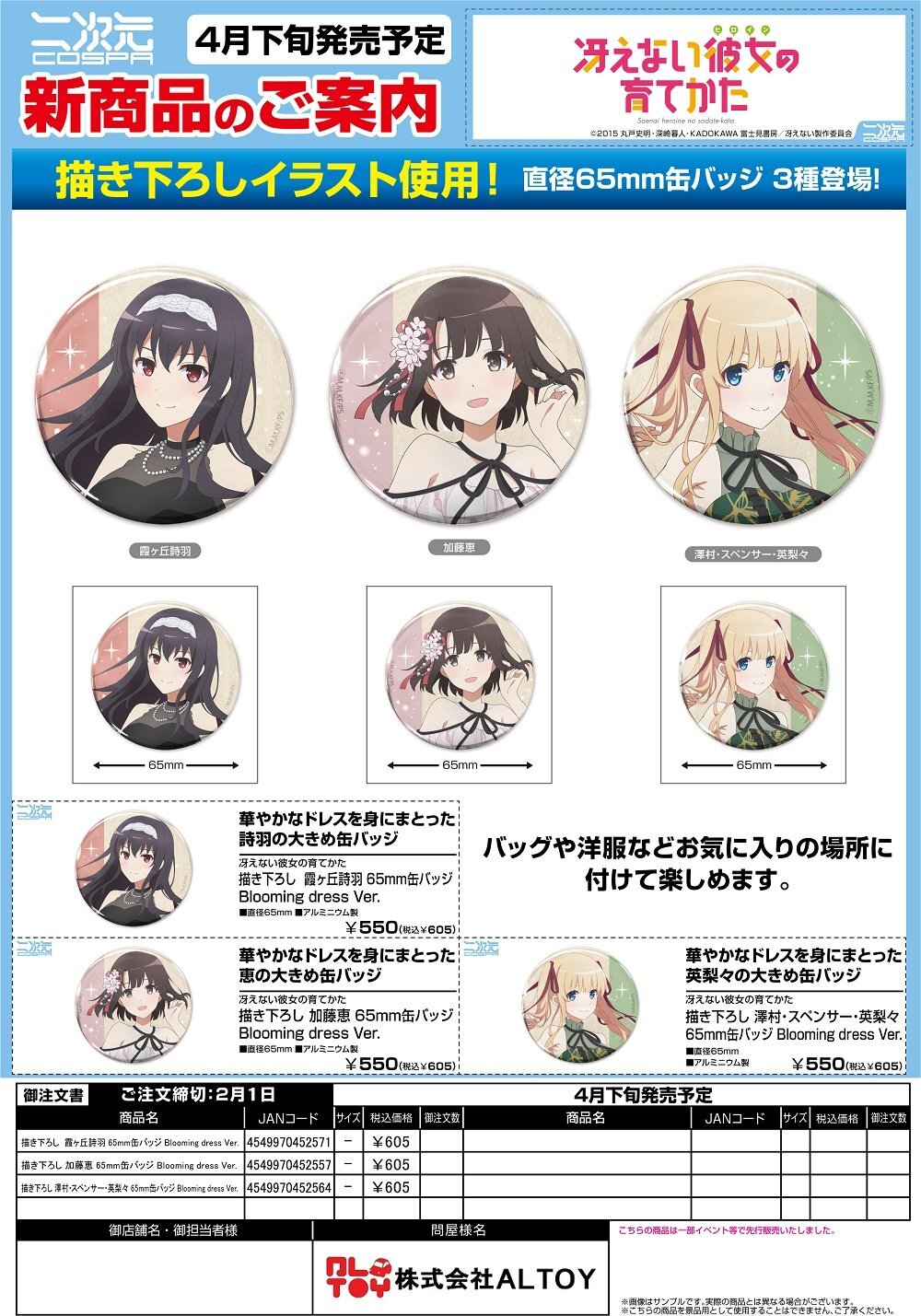 冴えない彼女の育てかた 65mm缶バッジ 描き下ろし Blooming dress Ver. 『霞ヶ丘詩羽』『加藤恵』『澤村・スペンサー・英梨々』【2026年4月下旬発売】[4549970452571]