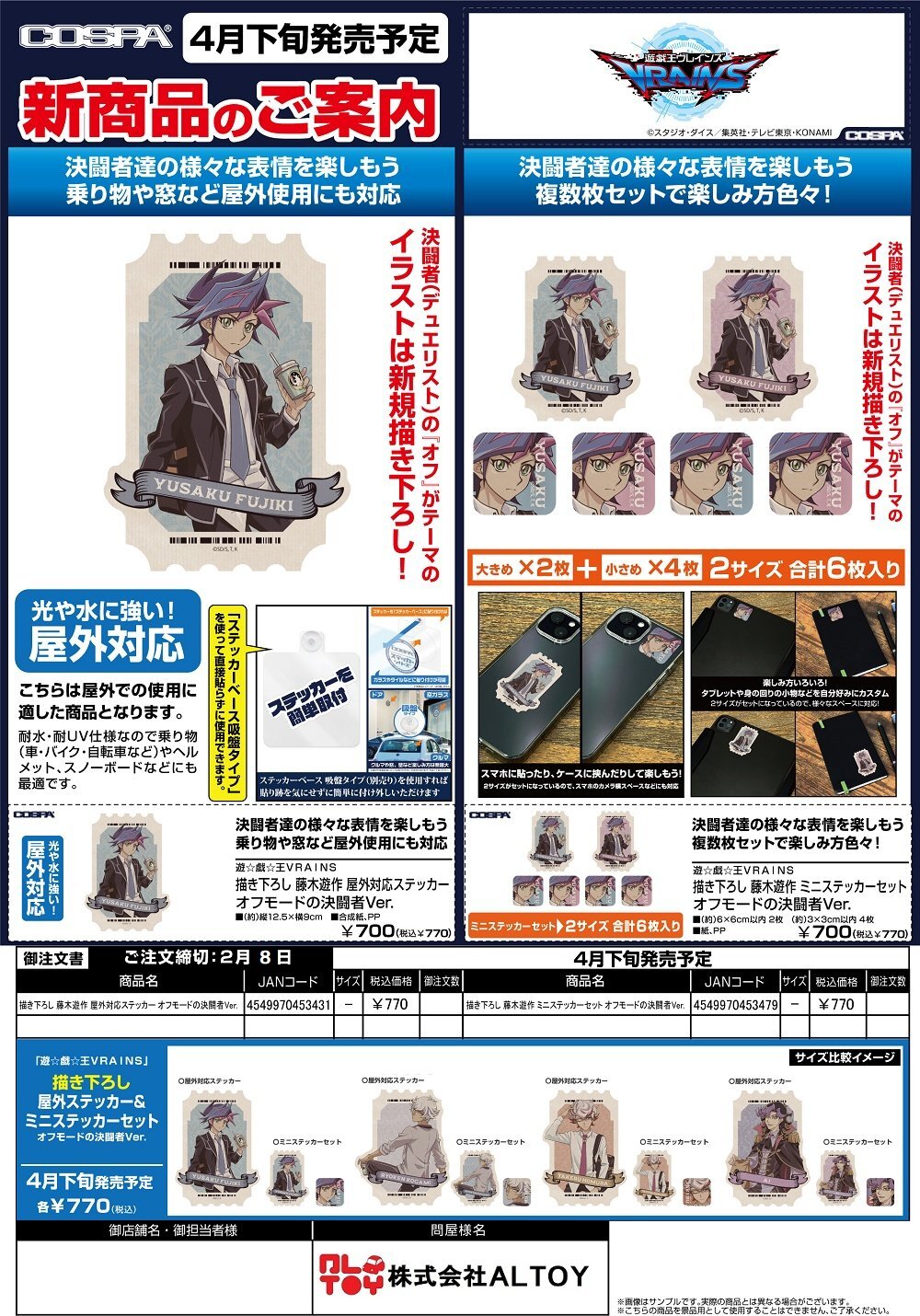 遊☆戯☆王VRAINS 描き下ろし オフモードの決闘者Ver.『藤木遊作 屋外対応ステッカー』『藤木遊作 ミニステッカーセット』【2026年4月下旬発売】[4549970453431]