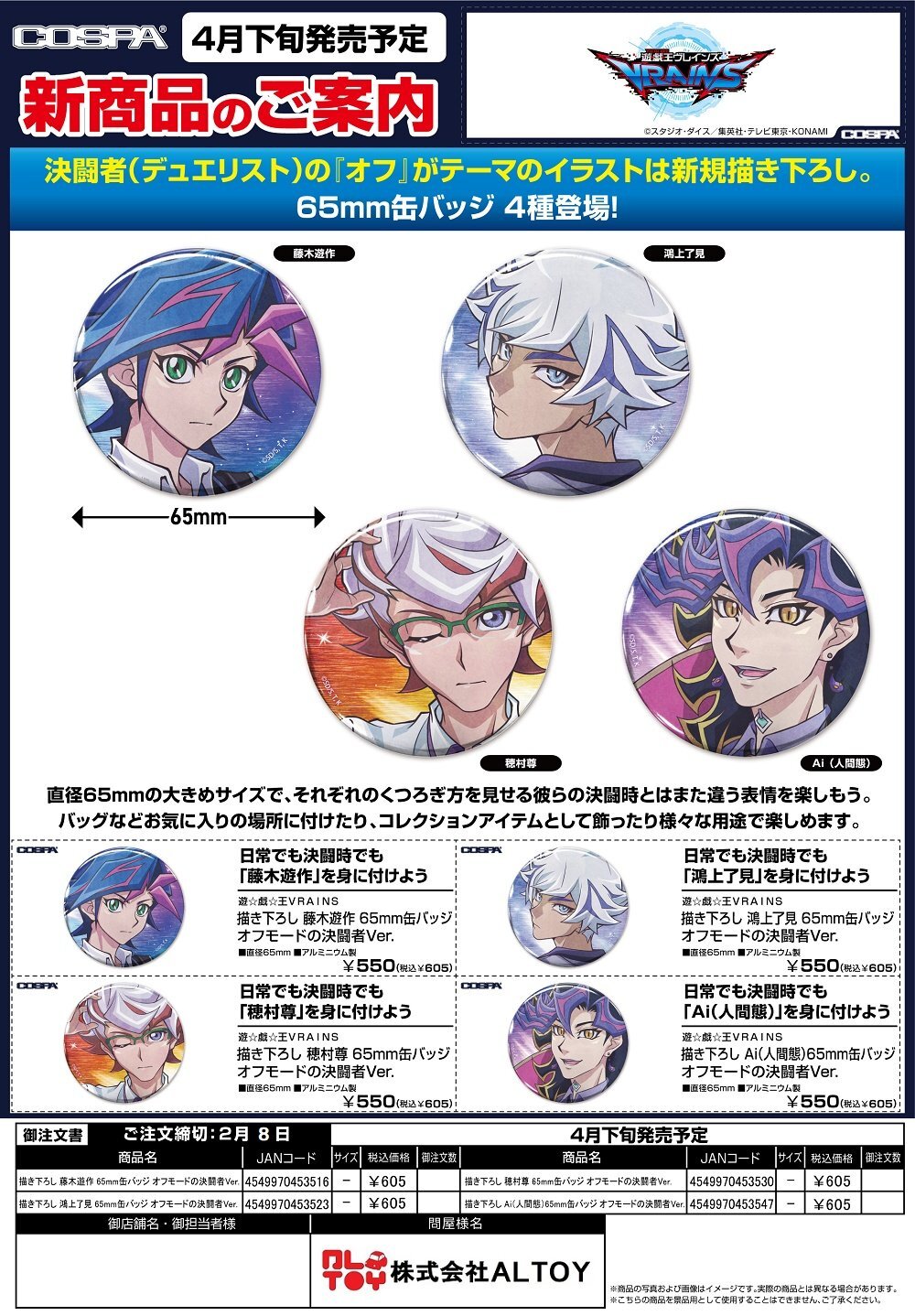 遊☆戯☆王VRAINS 65mm缶バッジ 描き下ろしオフモードの決闘者Ver. 『藤木遊作』『鴻上了見』『穂村尊』『Ai(人間態)』【2026年4月下旬発売】[4549970453516]