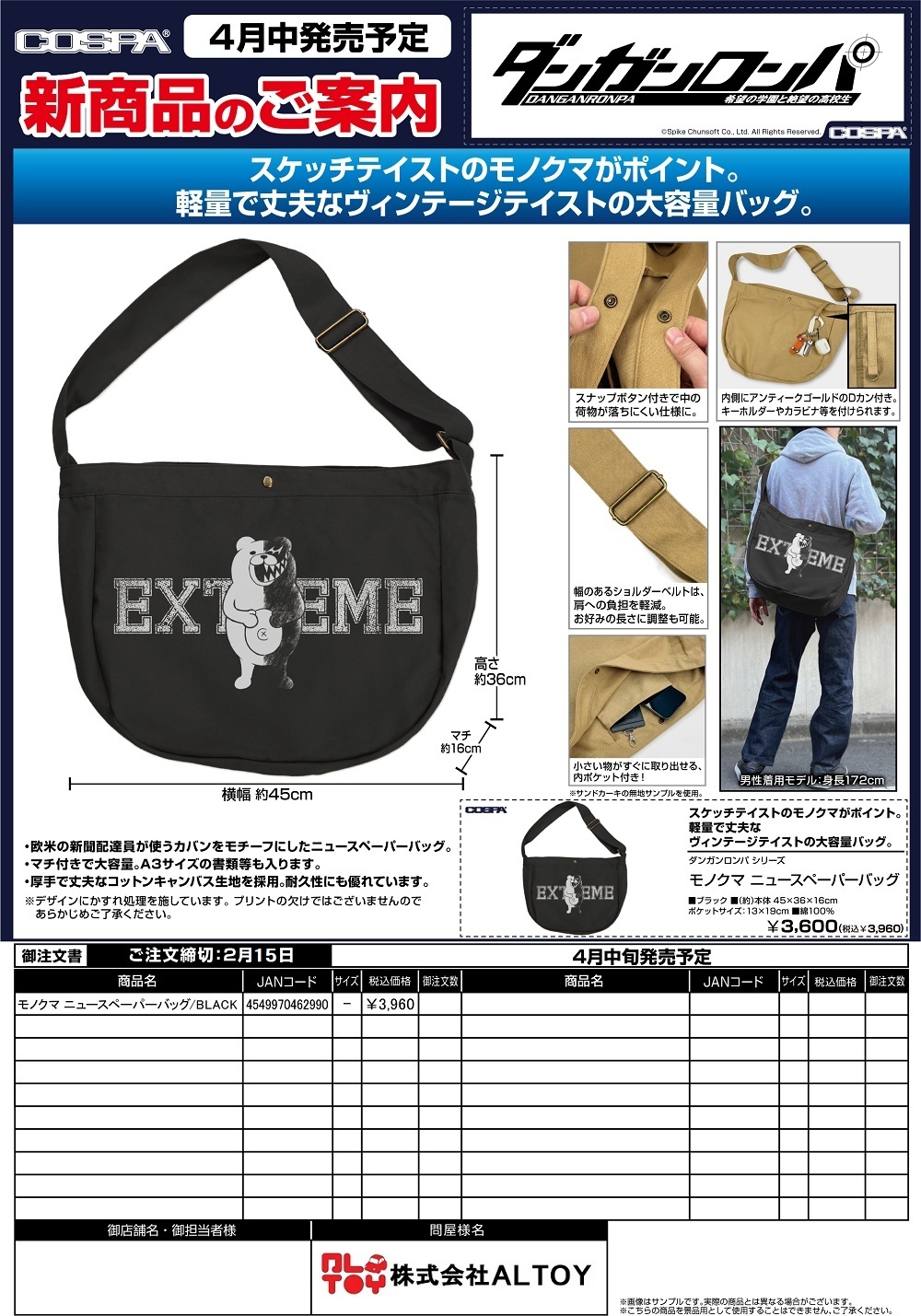 ダンガンロンパ ニュースペーパーバッグ『モノクマ』【2026年4月中旬発売】[4549970462990]