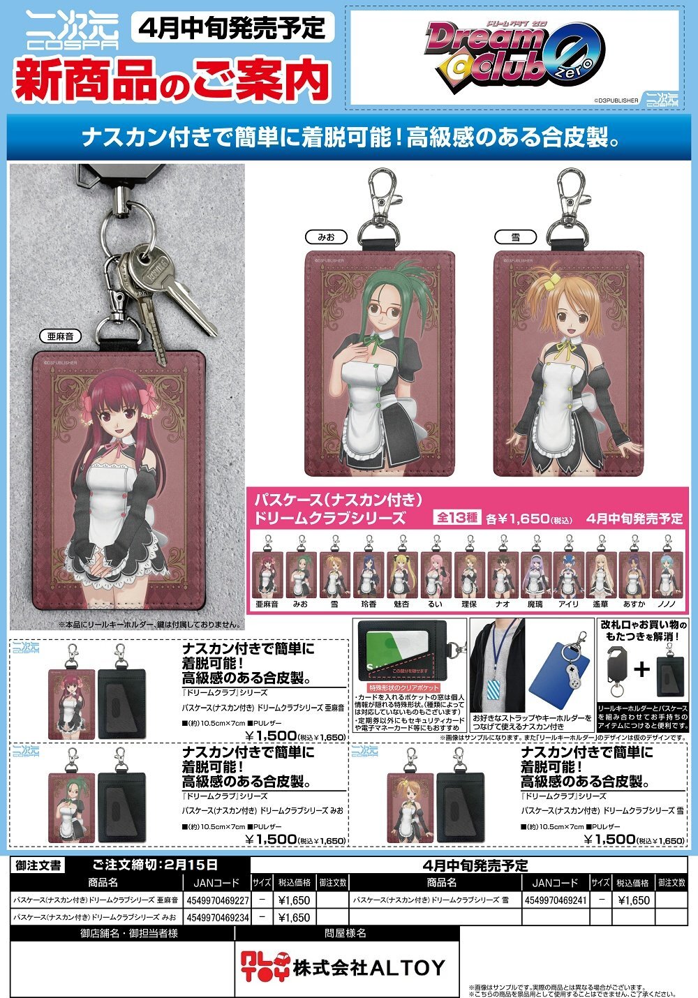 『ドリームクラブ』シリーズ パスケース(ナスカン付き)『亜麻音』『みお』『雪』【2026年4月中旬発売】[4549970469227]