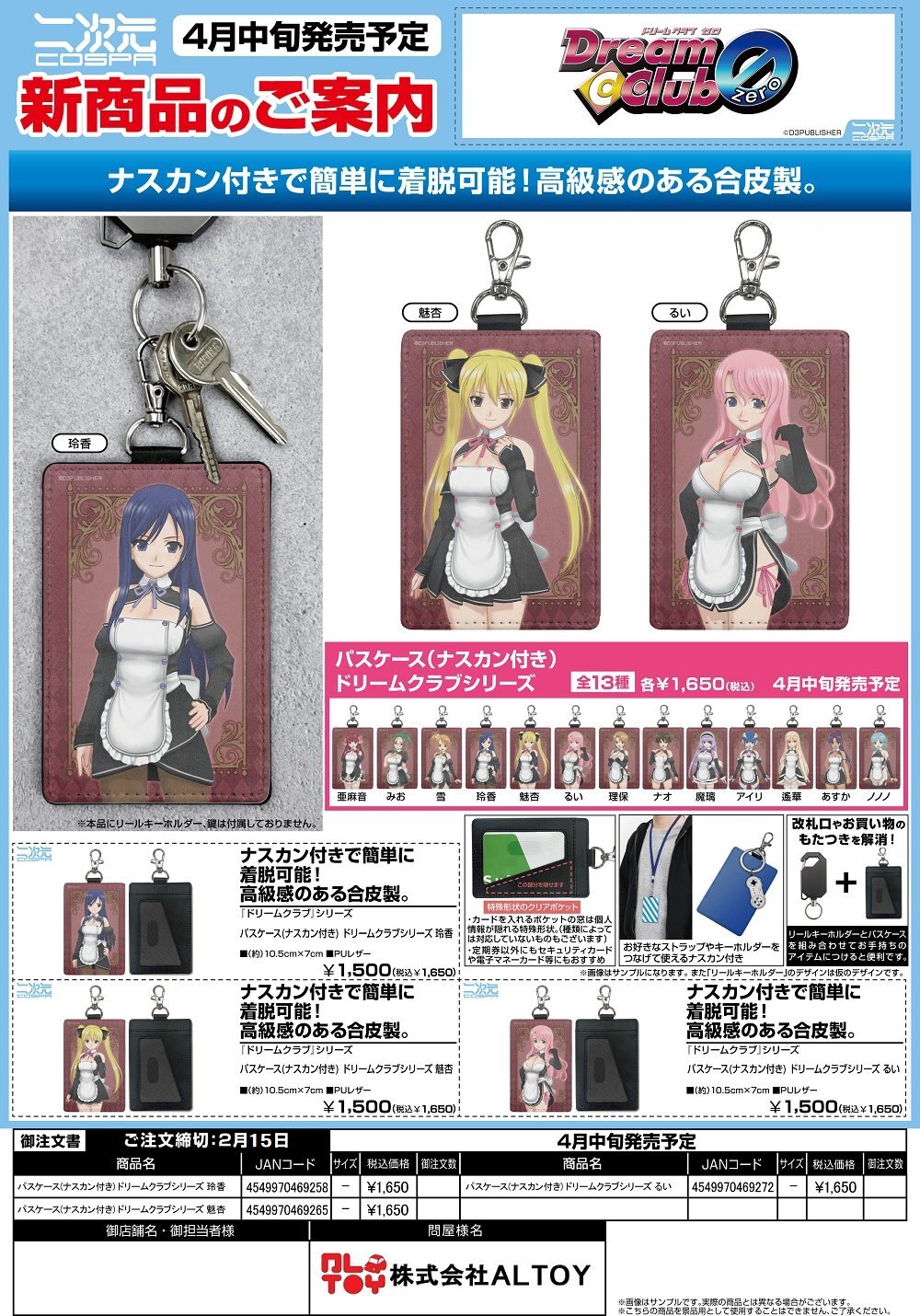 『ドリームクラブ』シリーズ パスケース(ナスカン付き)『玲香』『魅杏』『るい』【2026年4月中旬発売】[4549970469258]