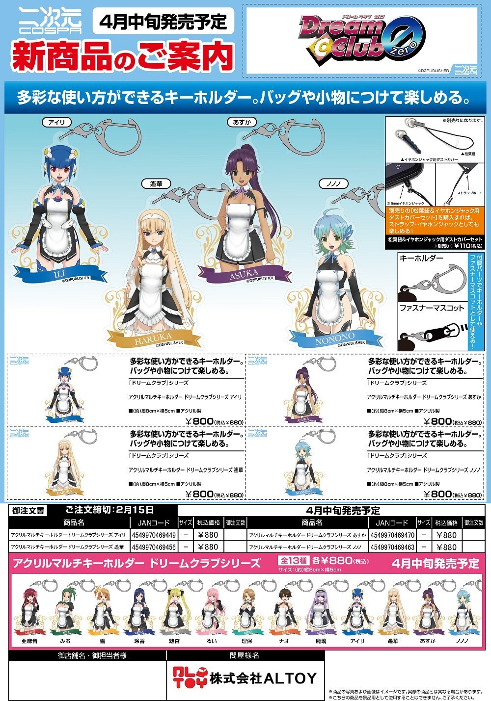 『ドリームクラブ』シリーズ アクリルマルチキーホルダー『アイリ』『遙華』『あすか』『ノノノ』【2026年4月中旬発売】[4549970469449]