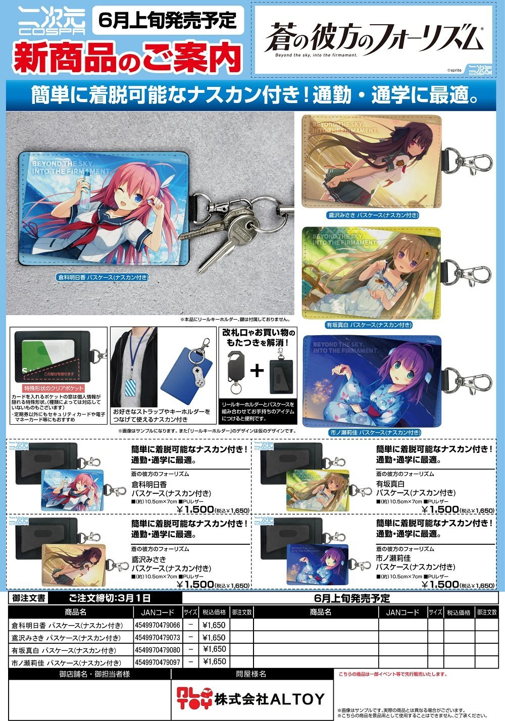 蒼の彼方のフォーリズム パスケース(ナスカン付き)『倉科明日香』『鳶沢みさき』『有坂真白』『市ノ瀬莉佳』【2026年6月上旬発売】[4549970479066]