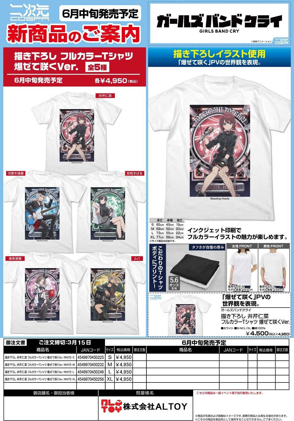 ガールズバンドクライ『描き下ろし 井芹仁菜 フルカラーTシャツ 爆ぜて咲くVer.』【2026年6月中旬発売】[4549970450225]