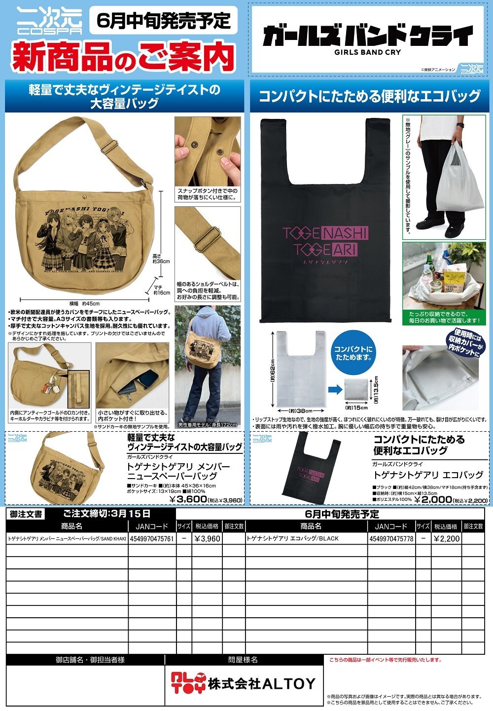 ガールズバンドクライ『トゲナシトゲアリ メンバー ニュースペーパーバッグ』『トゲナシトゲアリ エコバッグ』【2026年6月中旬発売】[4549970475761]