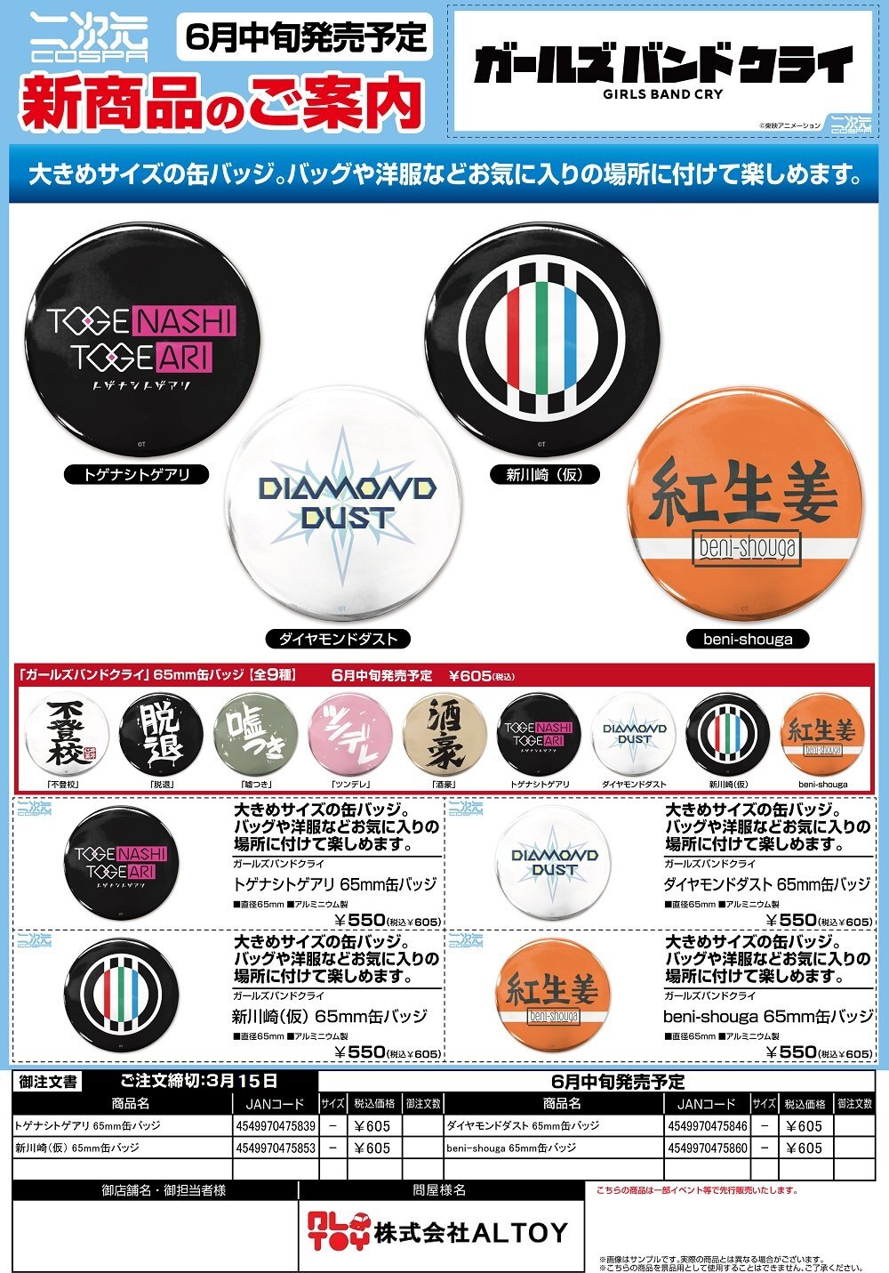 ガールズバンドクライ 65mm缶バッジ『トゲナシトゲアリ』『ダイヤモンドダスト』『新川崎(仮)』『beni-shouga』【2026年6月中旬発売】[4549970475839]
