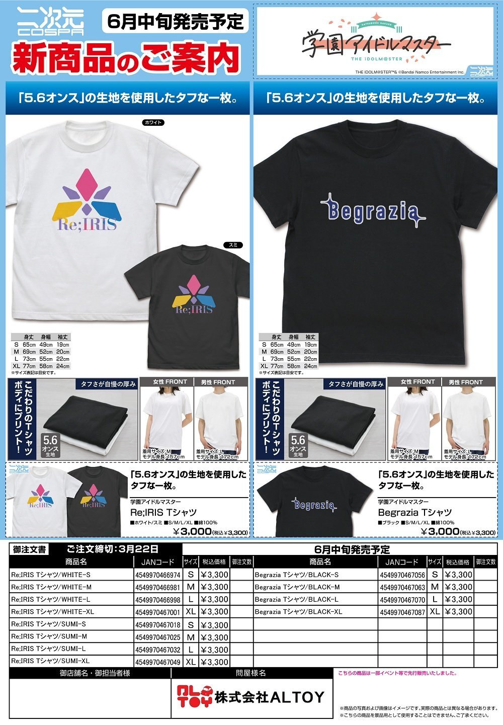 学園アイドルマスター『Re;IRIS Tシャツ』『Begrazia Tシャツ』【2026年6月中旬発売】[4549970466974]