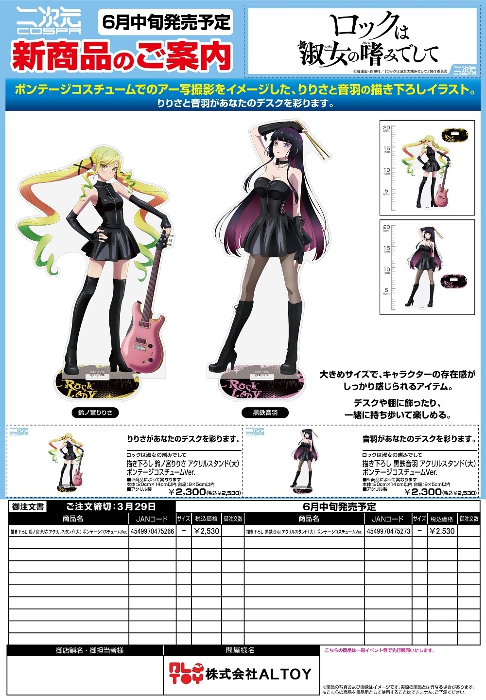 ロックは淑女の嗜みでして 描き下ろし アクリルスタンド(大) ボンテージコスチュームVer. 『鈴ノ宮りりさ』『黒鉄音羽』【2026年6月中旬発売】[4549970475266]