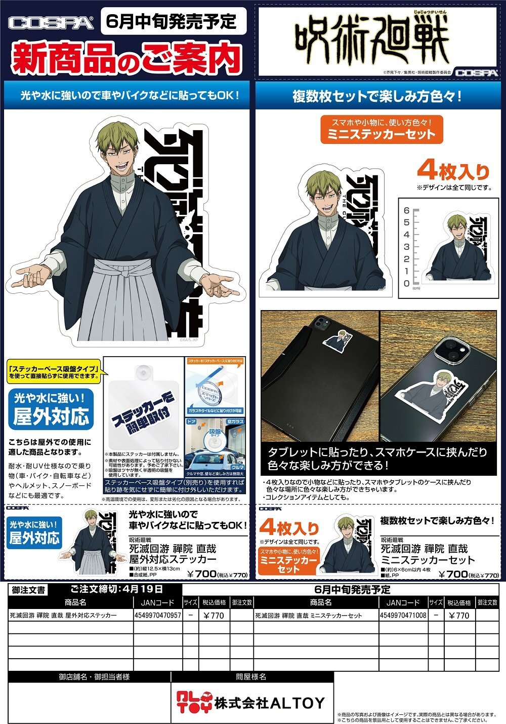 呪術廻戦 死滅回游『禪院 直哉 屋外対応ステッカー』『禪院 直哉 ミニステッカーセット』【2026年6月中旬発売】[4549970470957]