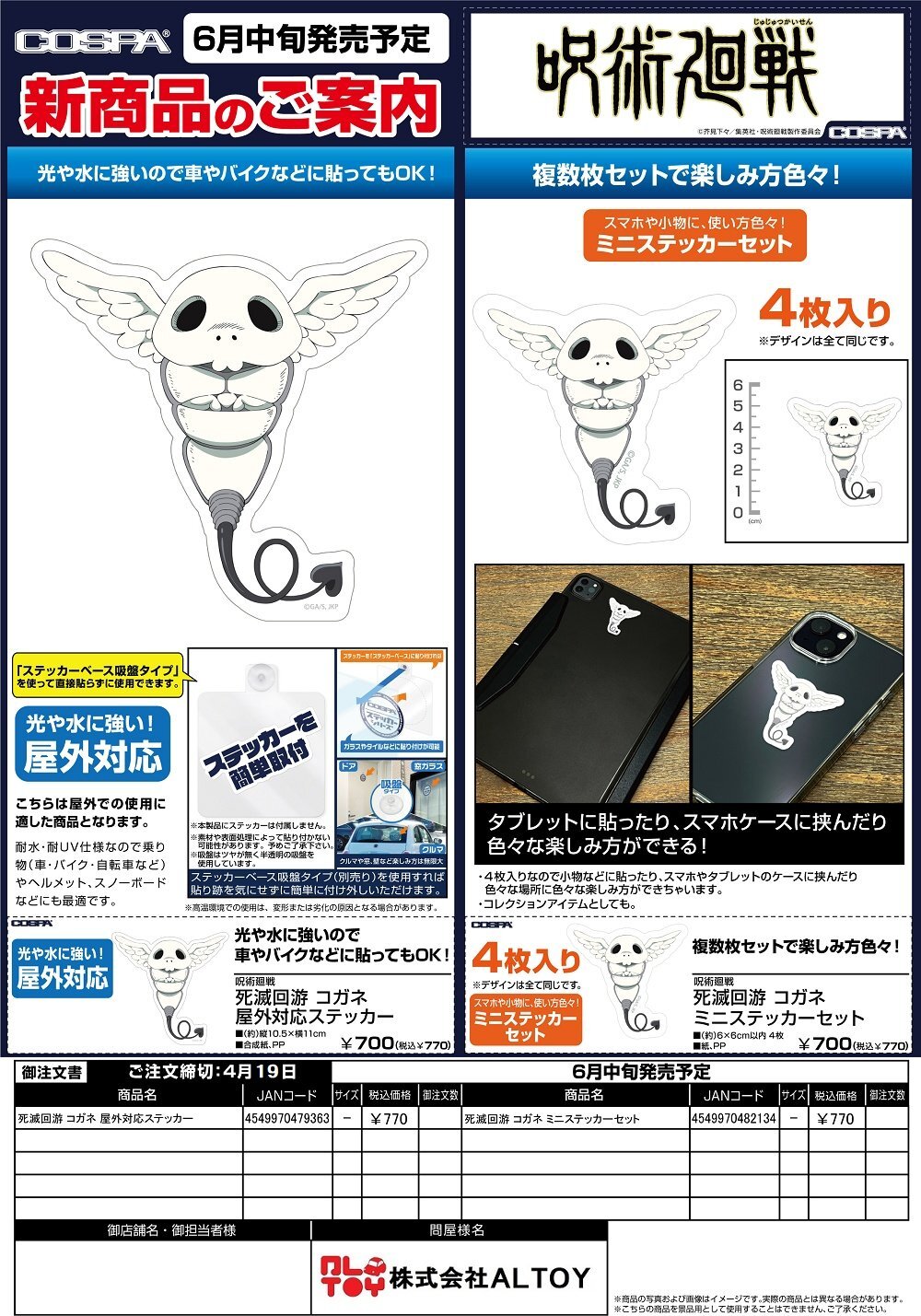 呪術廻戦 死滅回游『コガネ 屋外対応ステッカー』『コガネ ミニステッカーセット』【2026年6月中旬発売】[4549970479363]