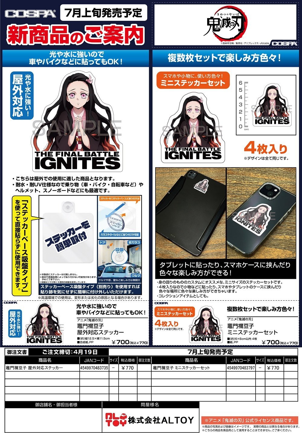 鬼滅の刃『竈門禰豆子 屋外対応ステッカー』『竈門禰豆子 ミニステッカーセット』【2026年7月上旬発売】[4549970483735]
