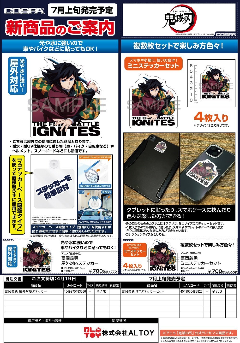 鬼滅の刃『冨岡義勇 屋外対応ステッカー』『冨岡義勇 ミニステッカーセット』【2026年7月上旬発売】[4549970483766]
