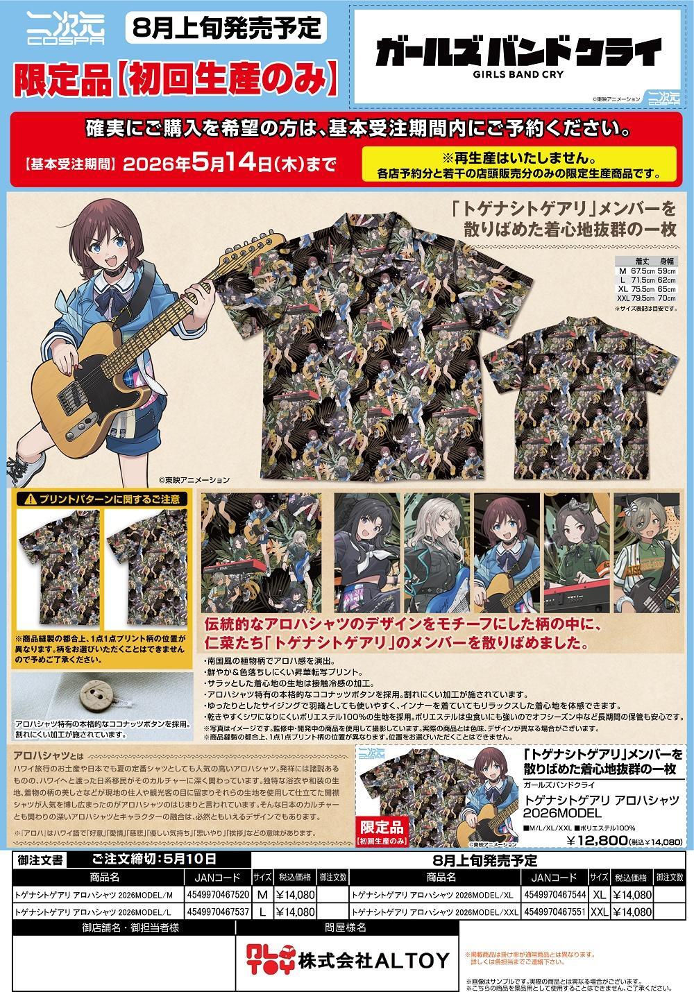 ガールズバンドクライ『★限定★トゲナシトゲアリ アロハシャツ 2026MODEL』【2026年8月上旬発売】[4549970467520]