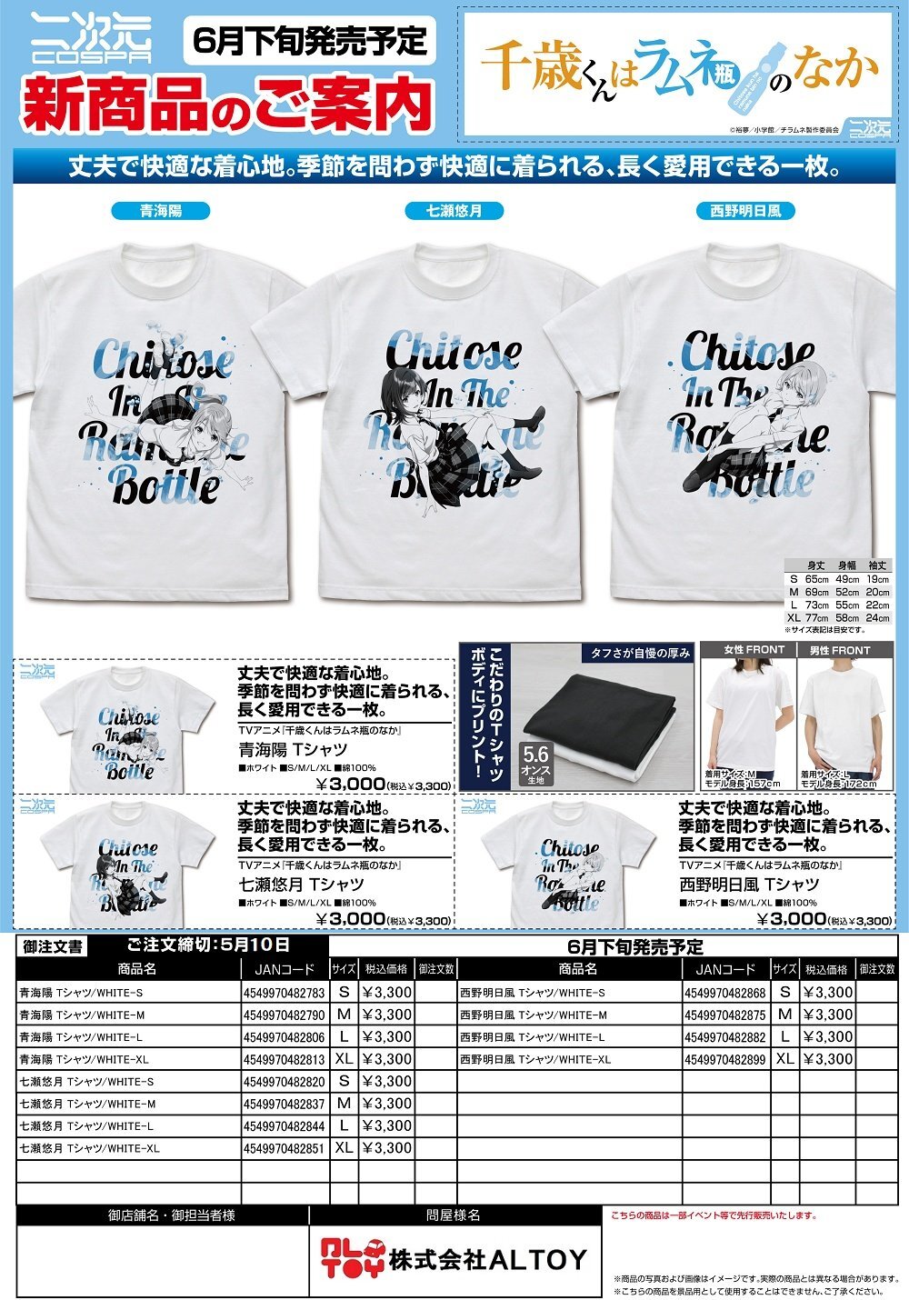 千歳くんはラムネ瓶のなか『青海陽 Tシャツ』『七瀬悠月 Tシャツ』『西野明日風 Tシャツ』【2026年6月下旬発売】[4549970482783]