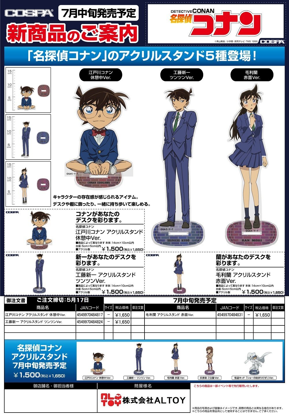 名探偵コナン アクリルスタンド『江戸川コナン 休憩中Ver.』『工藤新一 ツンツンVer.』『毛利蘭 赤面Ver.』【2026年7月中旬発売】[4549970484817]